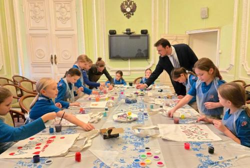 Глава муниципального округа Хамовники Алексей Васильев в преддверии Дня матери организовал мастер-класс, в котором приняли участие ученицы-юнармейцы третьих классов школы № 1231 им. Поленова.