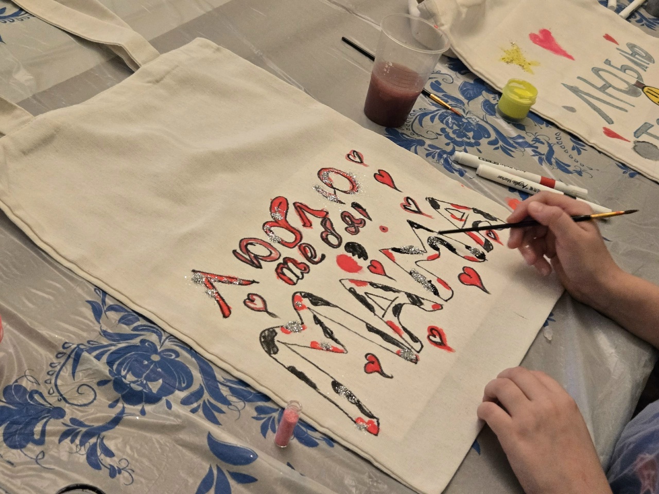 Мастер-класс «Мамин день календаря» провела многодетная мама, житель района Хамовники Анна Хлебникова. На мероприятии юные художницы овладели навыками техники росписи по ткани и красочно оформили яркие шоперы, чтобы поздравить своих мам в тёплый праздник, который отмечается в России 30 ноября.