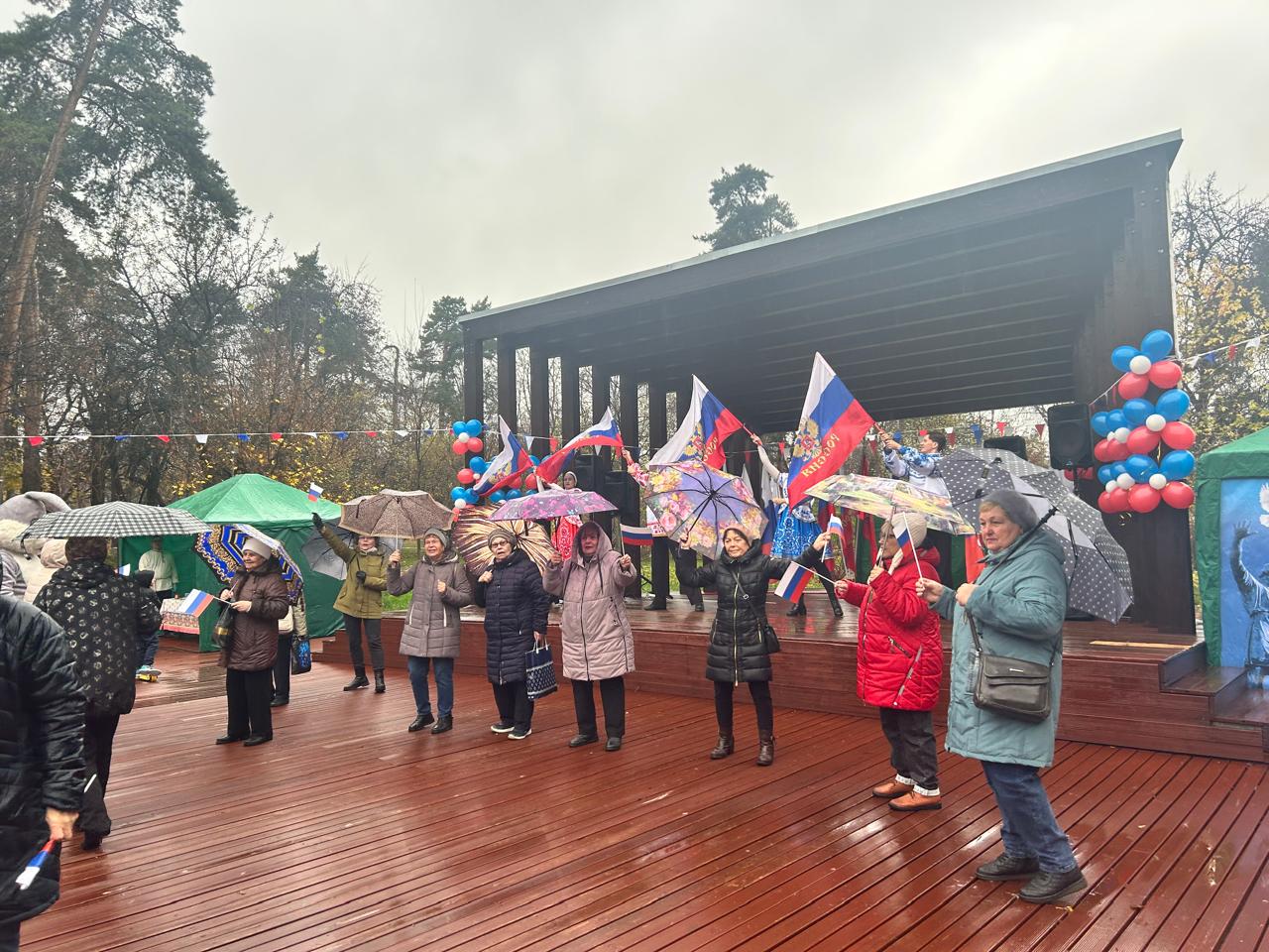 В парке Сосенки 4 ноября аппарат Совета депутатов муниципального округа Царицыно организовал праздничное мероприятие в честь Дня народного единства.