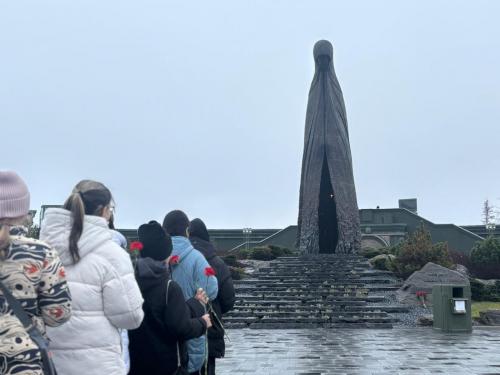 Первой точкой маршрута стал павильон «Сирия» – место, где собран уникальный материал о работе российских военных, о миротворческих и гуманитарных миссиях. Затем учащиеся возложили цветы к скульптурной композиции «Матерям победителей» – символу благодарности и уважения к женщинам, чья любовь и сила духа стали опорой для защитников страны.