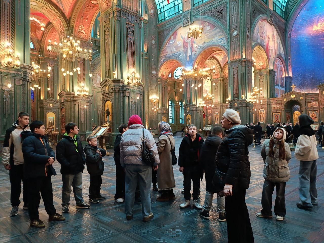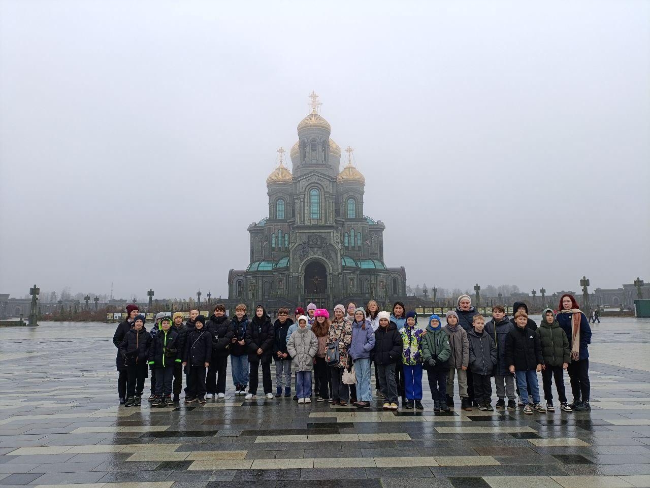 Далее ребята отправились на экскурсию «Святые покровители Российского воинства» в Главном Храме Вооружённых Сил России, Соборе Воскресения Христова. Экскурсоводы рассказали о духовных традициях русского воинства. Школьники побывали и в музейном комплексе «Дорога памяти. 1418 шагов к Победе». Этот мемориальный маршрут позволяет прожить путь всей страны в годы Великой Отечественной войны от первых дней до долгожданного мира.