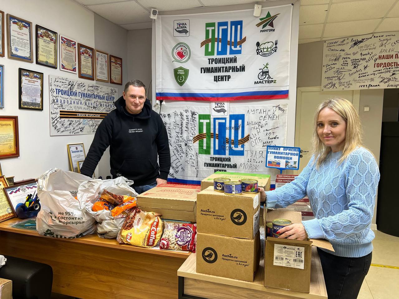 Закупленные на собранные депутатами и сотрудниками аппарата средства продукты питания передали в Троицкий гуманитарный центр и во Дворец спорта «Квант» (Сообщество волонтёров Троицка). Оттуда собранный груз уже направлен в зону проведения СВО.