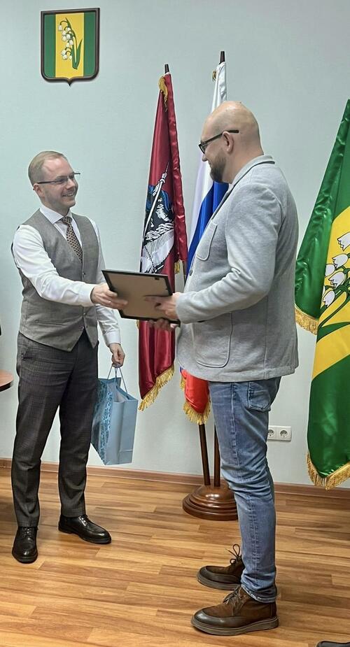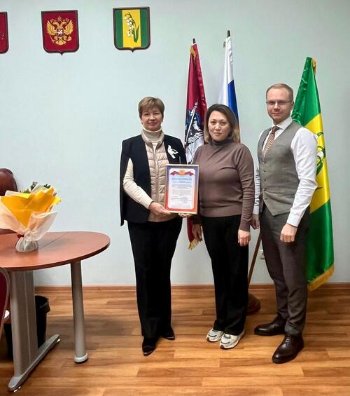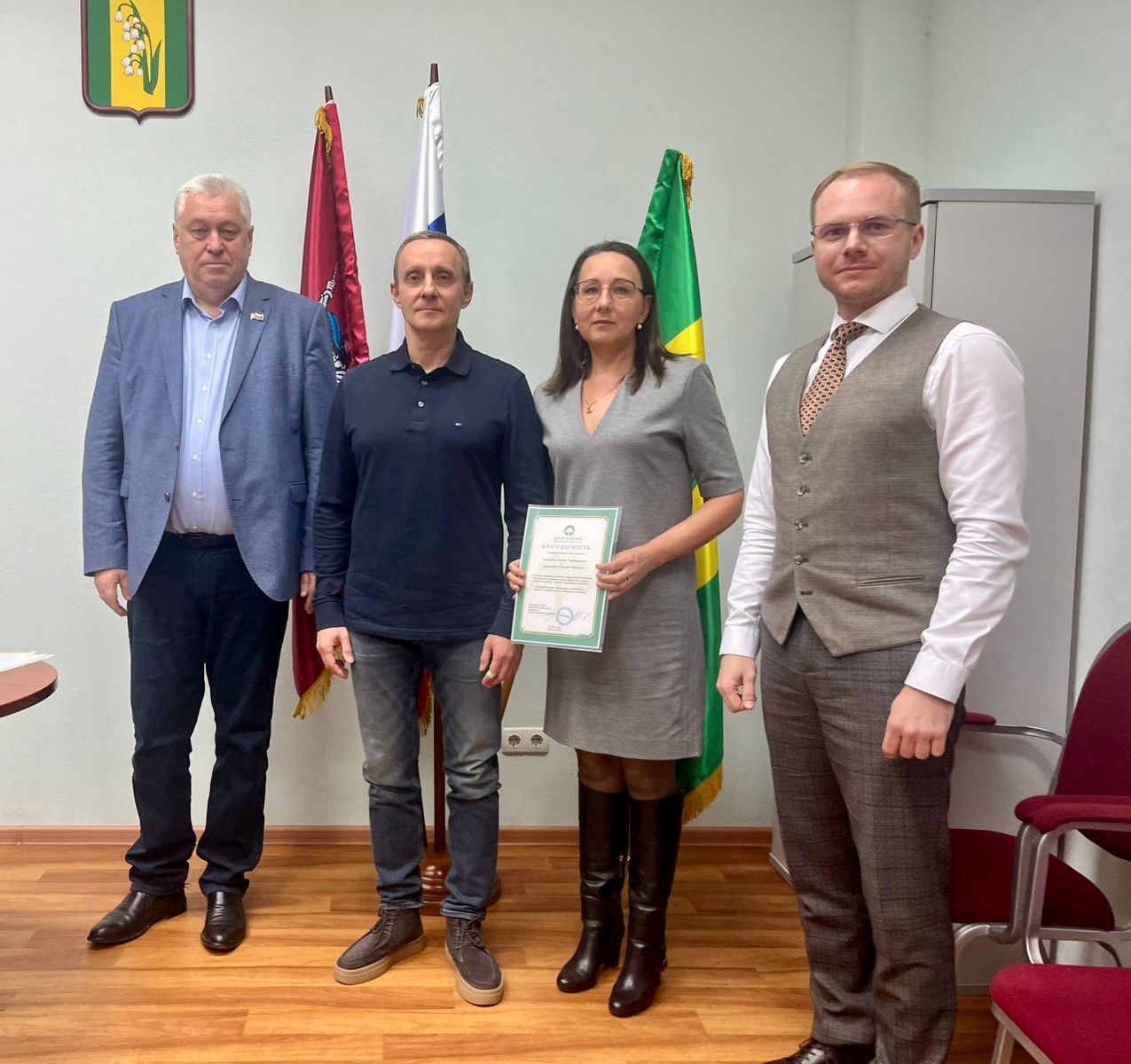 Затем депутат Владимир Кавалеров и активист движения «Женский тыл» Гуля Шмелева вручили благодарности Совету депутатов и приглашённым жителям района Сергею и Наталье за активное участие в волонтёрской деятельности района по оказанию гуманитарной помощи нашим защитникам, находящихся в зоне специальной военной операции.