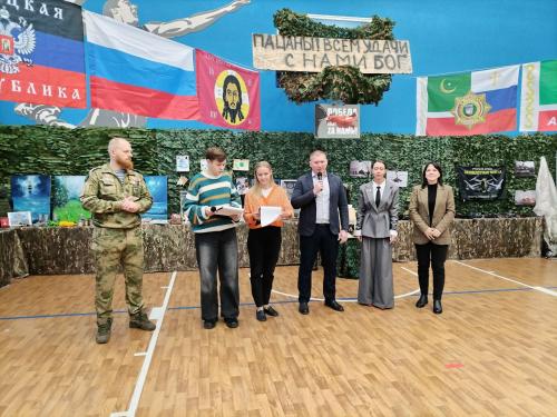 В акции приняли участие глава муниципального округа Александр Аршанский, исполняющий обязанности директора колледжа Ирина Кабанова, начальник отдела управы Елена Давыдкина, старший методист школы № 1412 Вероника Абысова и помощник-консультант депутата Народного Совета ДНР Александра Малькова.