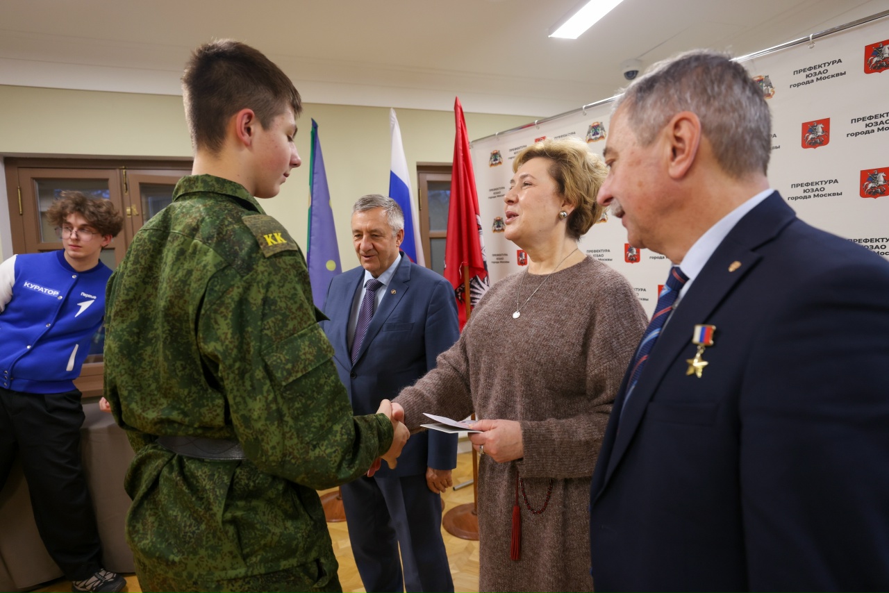 Мероприятие прошло в историческом флигеле на Перекопской улице. Поздравить ребят пришли советник префекта ЮЗАО Валерий Виноградов и Герой России, космонавт Александр Лазуткин.