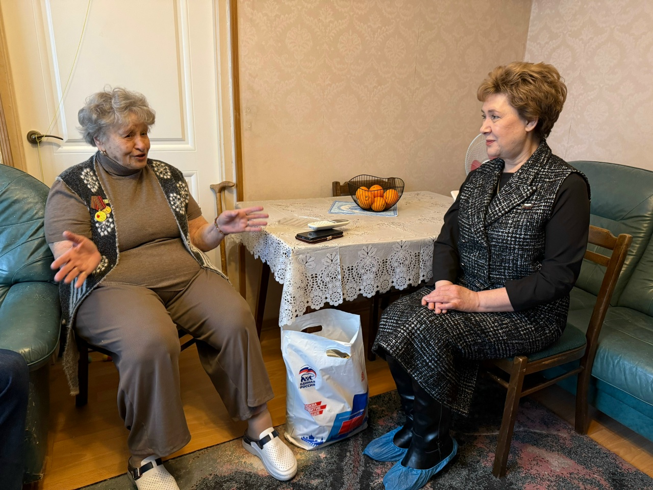 Валентина Петровна – председатель общественной организации участников обороны и жителей блокадного Ленинграда района Ясенево, живая легенда и пример невероятной стойкости. Гости вручили ей праздничный набор, а Валентина Петровна с присущей ей теплотой и мудростью поделилась воспоминаниями о своей жизни, рассказала о тех испытаниях, которые выпали на долю её поколения.