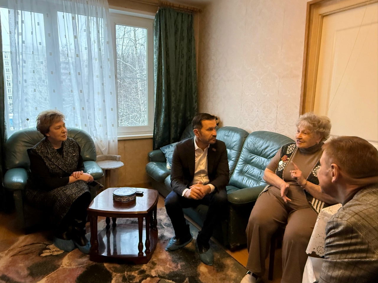 Глава муниципального округа Ясенево Ирина Гришина вместе с депутатом Московской городской Думы Александром Семенниковым и главой управы района Алексеем Толчеевым в рамках акции «С Новым годом, ветеран!» побывали в гостях у удивительной женщины Валентины Петровны.