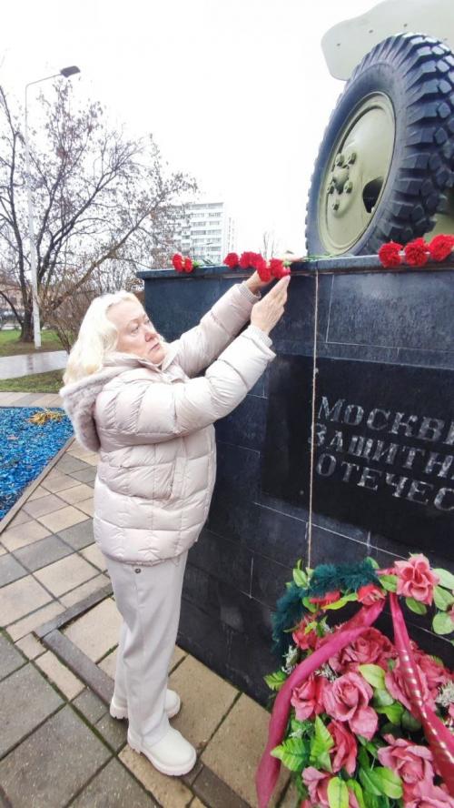 В день 84-й годовщины начала контрнаступления советских войск в Битве под Москвой глава муниципального округа Выхино-Жулбино Нина Калькова вместе с представителями Совета ветеранов, советниками главы управы и волонтёрами возложила цветы к памятному знаку «Москвичам – защитникам Отечества».