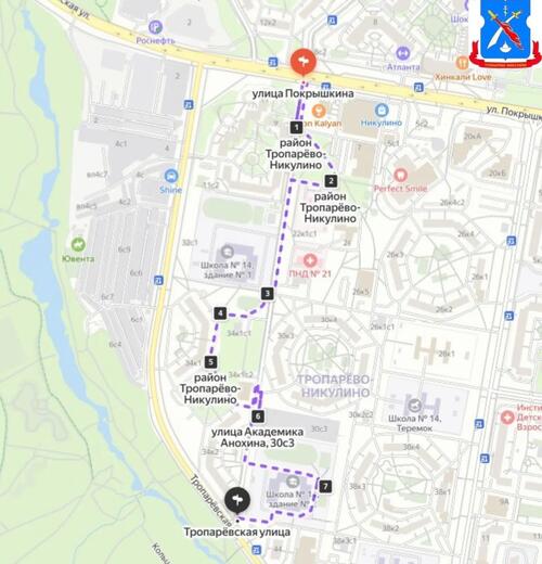 На минувшей неделе глава муниципального округа Тропарево-Никулино Павел Щуров вместе с заместителем главы управы по вопросам строительства, экономики, торговли и услуг Иваном Марцинюком, заместителем главы управы по работе с населением Ольгой Нигодиной, представителями ГБУ «Жилищник района Тропарево-Никулино», муниципальными депутатами и жителями района прошёл по территории от ул. Покрышкина, д. 9, до ул. Академика Анохина, д. 34, корп. 2.