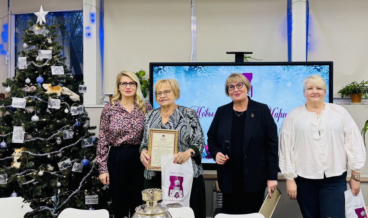За свою многолетнюю работу и вклад в развитие местного сообщества заслуженные благодарности и подарки получили Галина Ивановна, Елена Александровна и Нина Викторовна. Руководитель аппарата Совета депутатов муниципального округа Царицыно Елена Сафина выразила надежду, что следующий год принесет ещё больше достижений и успехов всем жителям района, и пожелала в наступающем году благополучия и новых достижений.