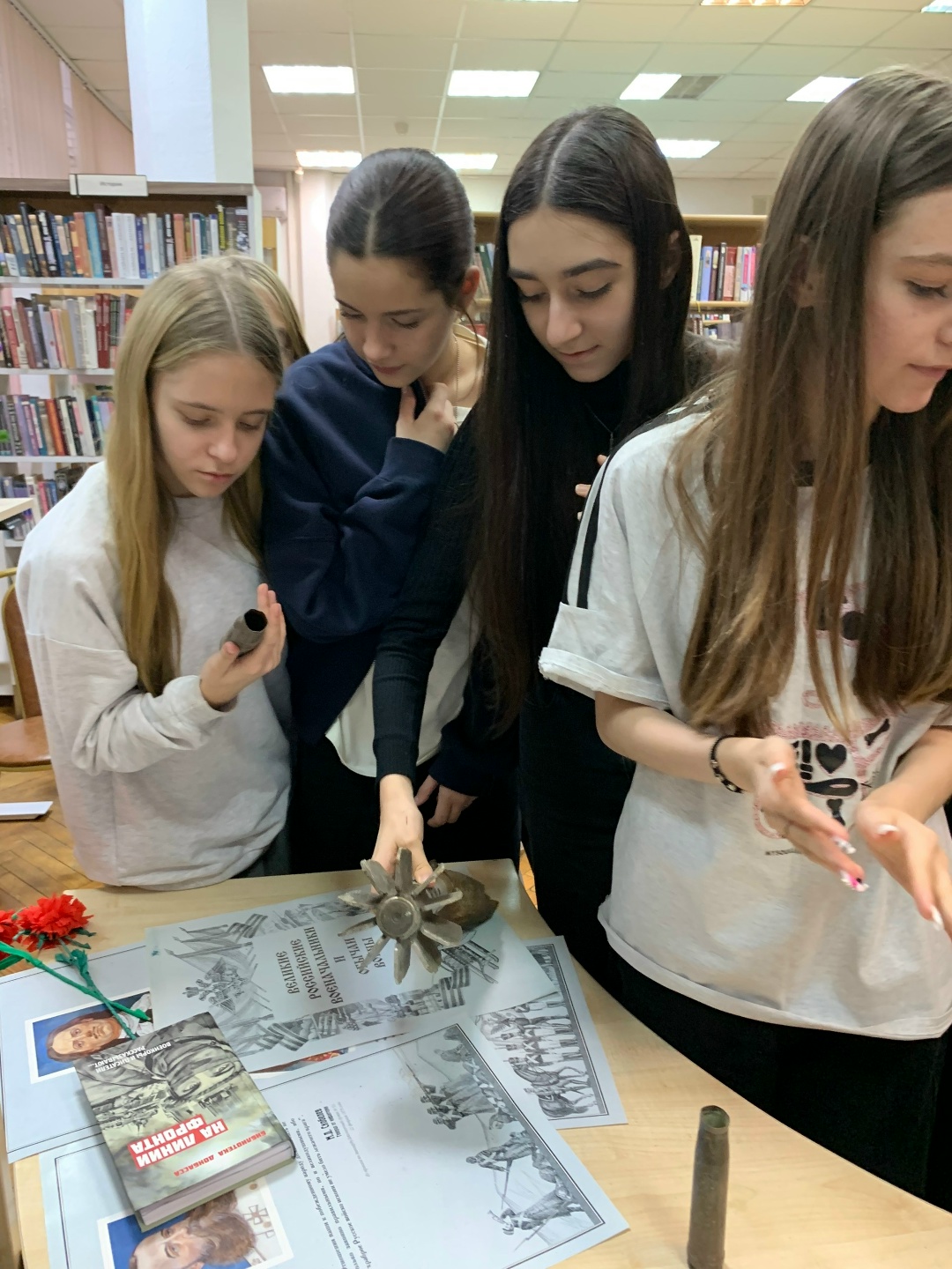 Участник военной операции делился своим опытом, рассказывал о службе, непростых буднях, товариществе, взаимовыручке. Школьникам показали экспонаты выставки «Живая история» и рассказали о волонтёрском движении в районе.