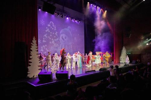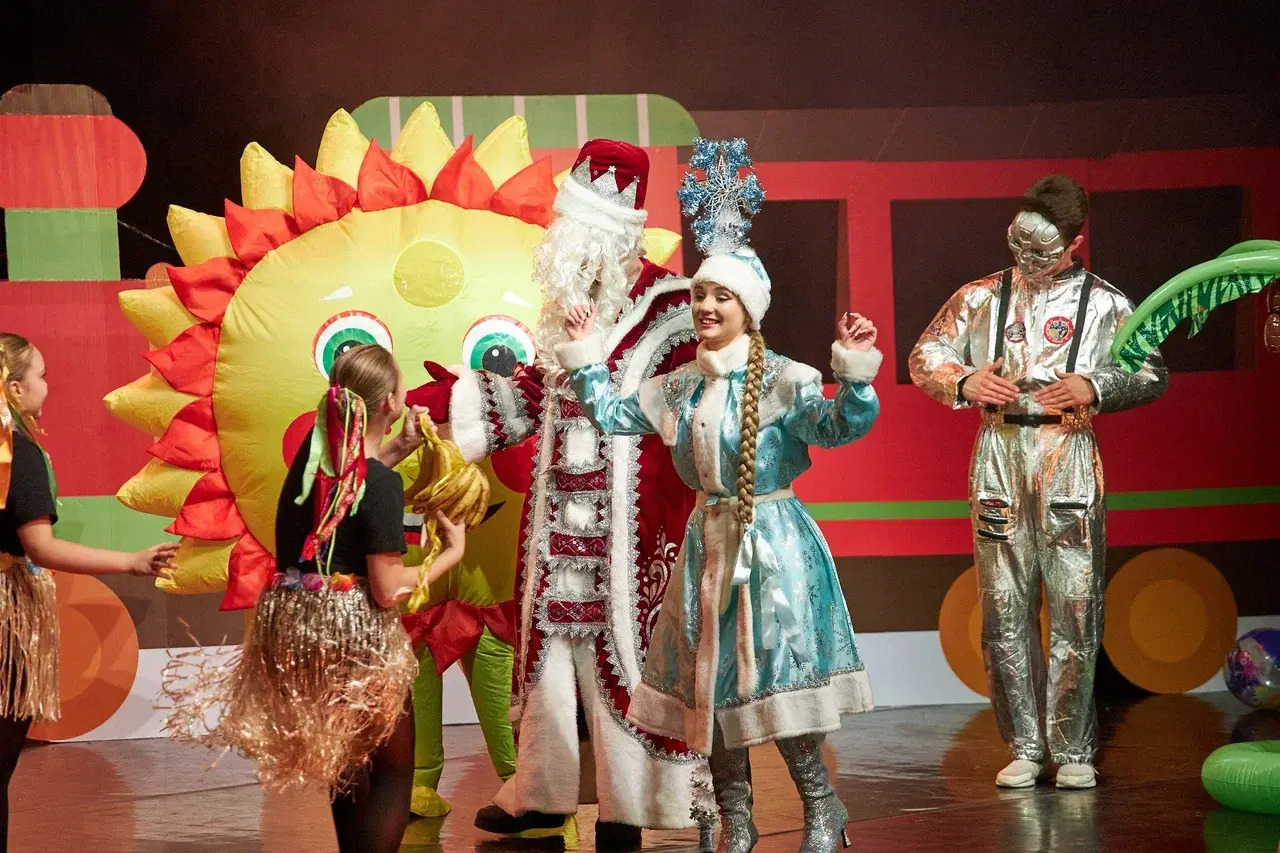 Главная интрига спектакля – Снежная Королева и её свита задумали сорвать праздник и остановить Деда Мороза, но главный зимний волшебник не растерялся, и вместе со Снегурочкой, верным Снеговиком и высокотехнологичным Роботом отправился к детям на специальном Новогоднем Экспрессе. В финале, как и положено в доброй сказке, даже Снежная Королева поняла, что дружба и веселье сильнее любого волшебства, и все герои вместе вышли на сцену для финальной песни.