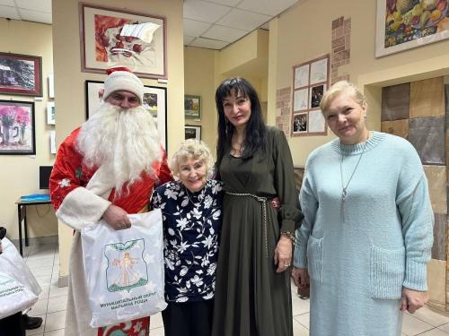 После выступления глава муниципального округа Марьина роща Екатерина Игнатова совместно с муниципальным депутатом, исполнительным секретарём местного отделения партии «Единая Россия» Оксаной Епифановой, председателем Совета ветеранов Неллей Айнетдиновой и Дедушкой Морозом вручили юбилярам памятные подарки и пообщались с жителями в тёплой дружеской атмосфере.