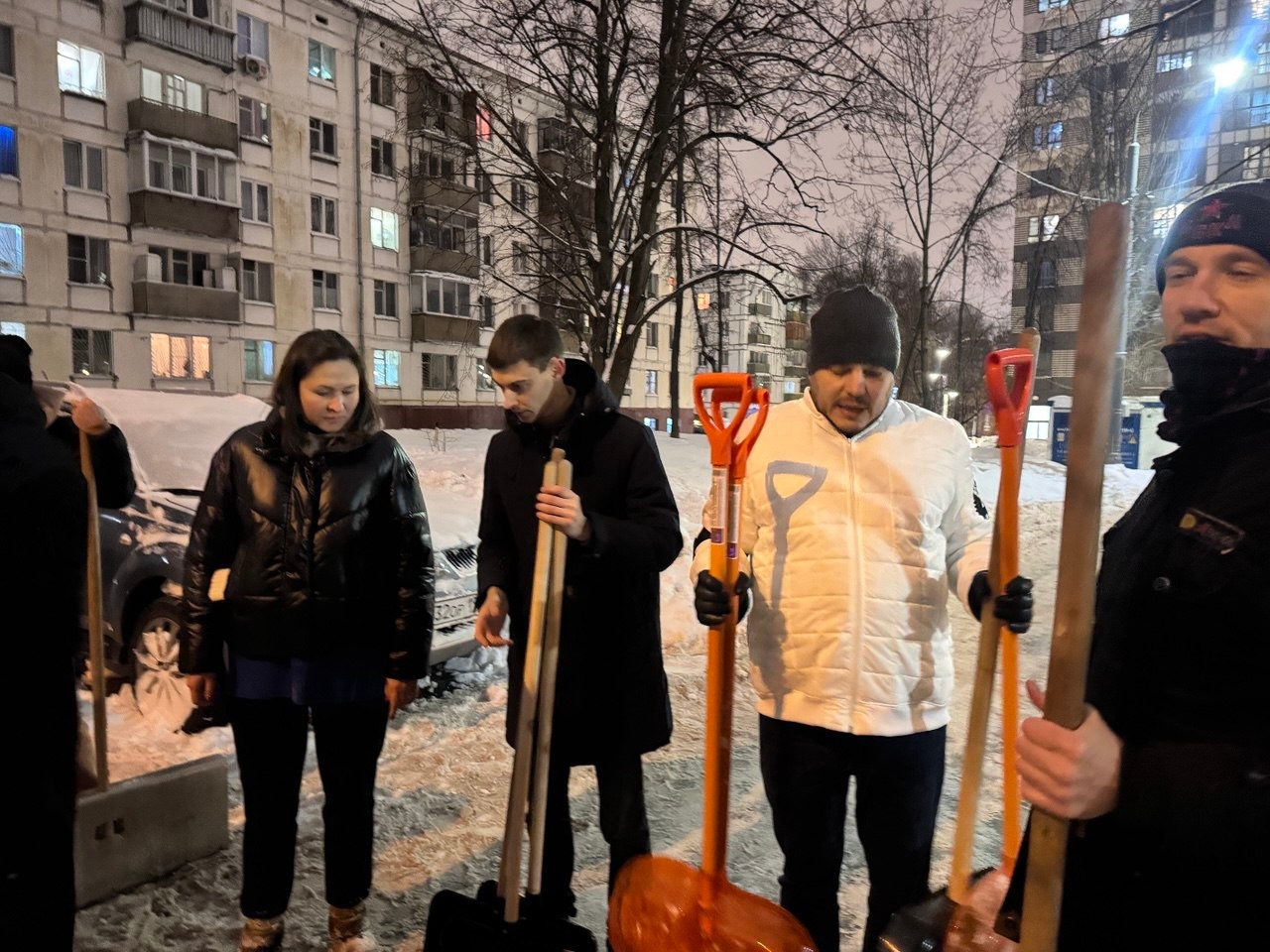 Глава муниципального округа Зюзино Виктория Шатова вместе с коллегами-депутатами и активными жителями 20 января расчистили от снега двор по просьбе жительницы дома по адресу: ул. Каховка, д. 16, корп. 2.