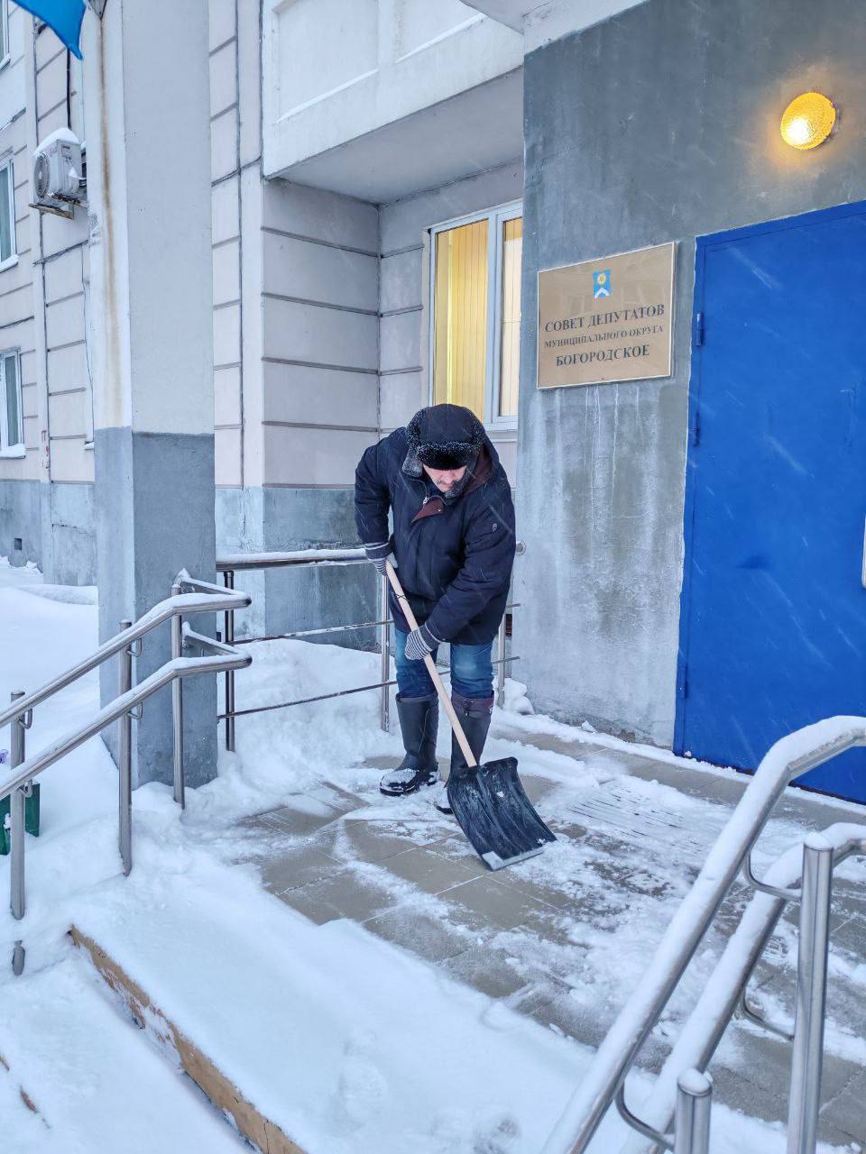 Глава муниципального округа Богородское Константин Воловик рассказал о снегоуборочных работах и лично принял участие в устранении последствий сильного снегопада.