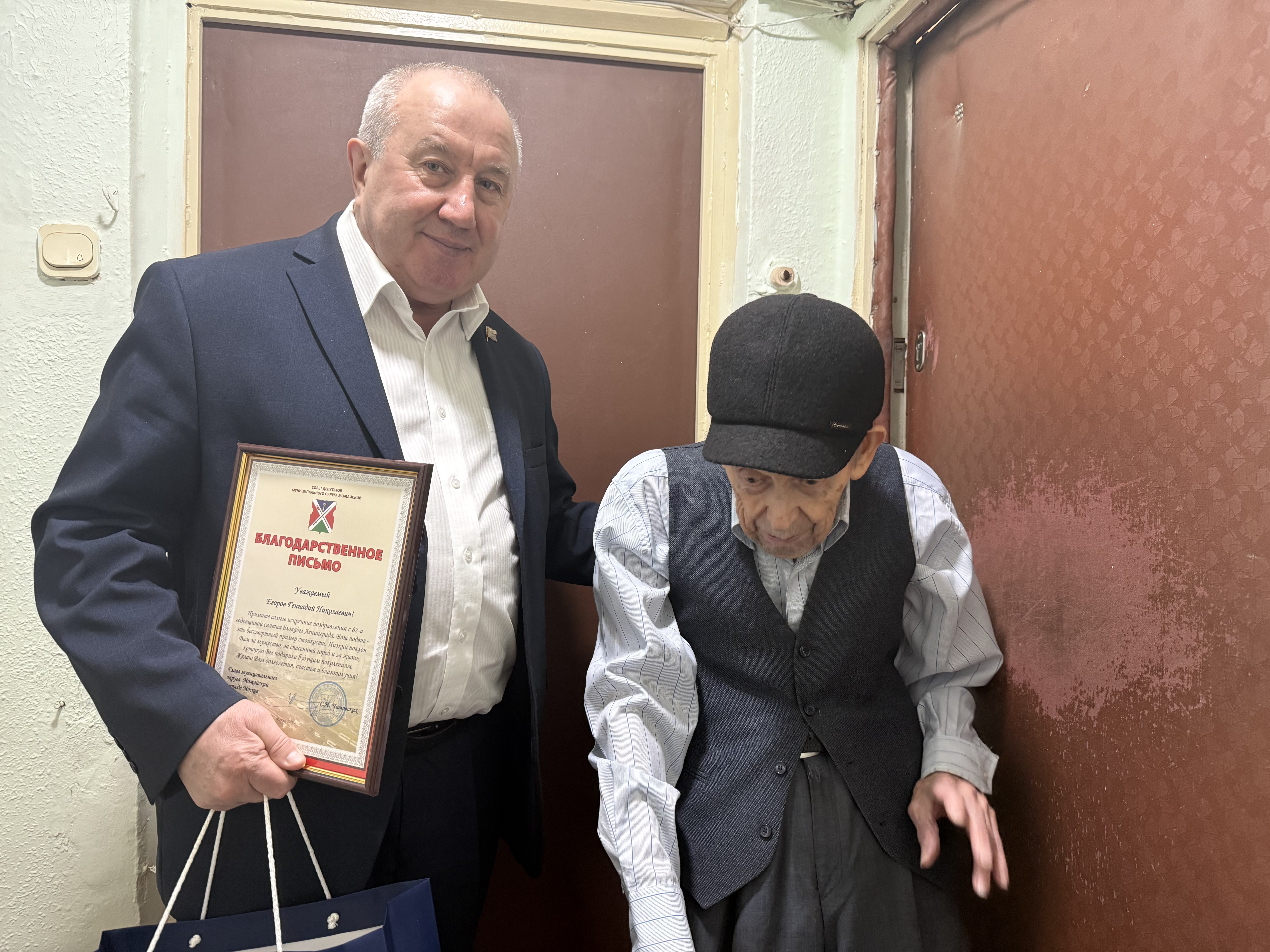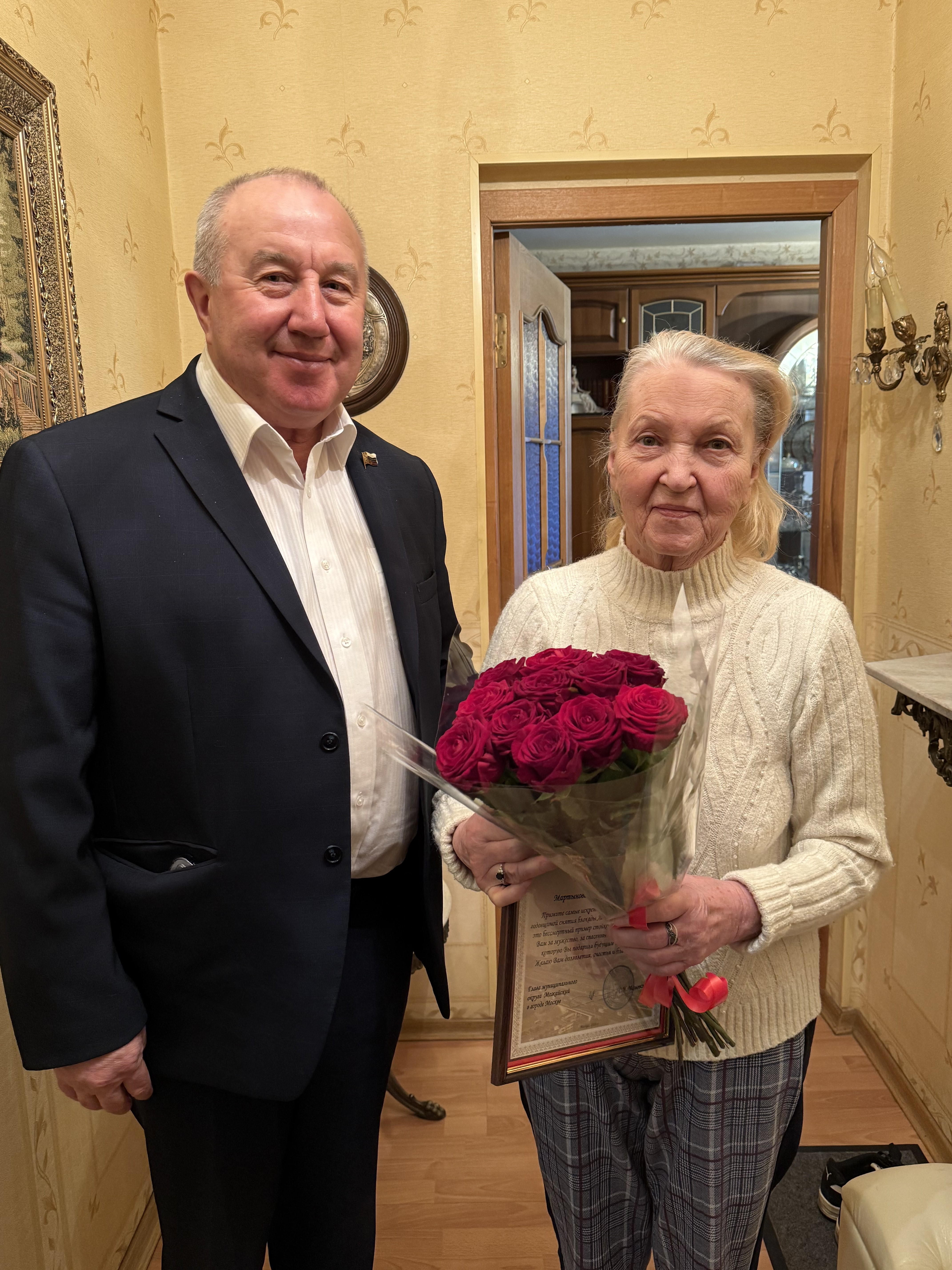 В Можайском районе проживают жители блокадного Ленинграда Изабелла Семёновна и Геннадий Николаевич. Глава округа Сергей Чамовских вместе с представителем управы Натальей Острецовой поздравил героев с Днём снятия блокады Ленинграда.