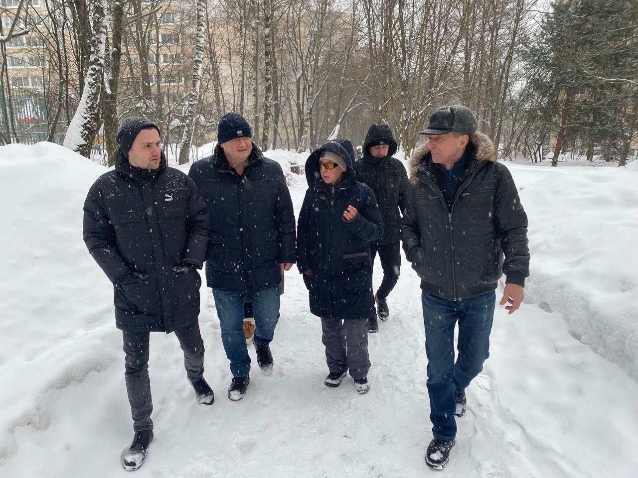 Депутат Совета депутатов муниципального округа Матушкино Юрий Юдахин вместе с руководством управы района 24 февраля провели осмотр территории первого микрорайона, включающего корпуса 129, 130А, 130Б, 125, 119, 118, 117.