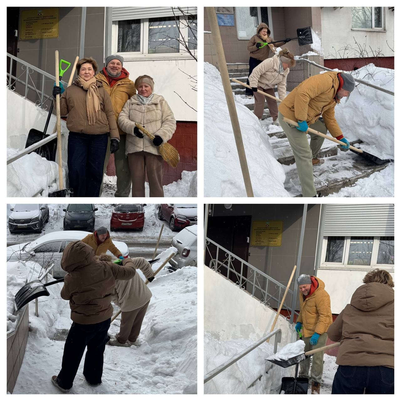 Кроме того, глава округа вместе с коллегами-депутатами вышла на мини-субботник. Участники разгребли сугробы у входа, почистили лестницы.