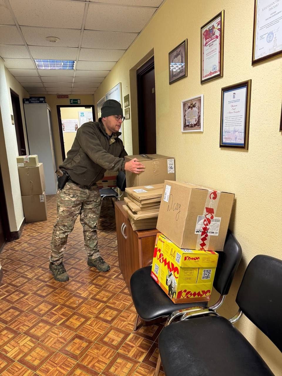 Глава муниципального округа Крылатское Максим Егоров вместе с членом «Боевого братства» Ольгой Петровской отвезли гуманитарную помощь бойцам гвардейской Александрийской бригады «Чёрные гусары».