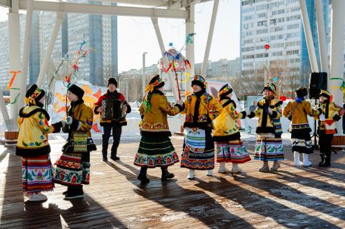 Звучала тематическая музыка, работали мастер-классы, дети и взрослые с упорством художников расписывали матрёшек и самовары, мастерили обрядовых кукол, дети фотографировались с огромными ростовыми куклами. Молодёжная палата района вместе с аниматорами организовали разнообразную интерактивную программу. Для гостей работала полевая кухня с гречневой кашей и блинами, проходили старинные игры с мячом, верёвкой и палками («сторож», «ужище», «шибиряйка»), состоялся зажигательный флешмоб, который объединил жителей всех возрастов.