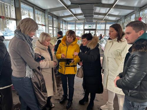 Глава муниципального округа Щербинка Наталья Аникеева и муниципальные депутаты Мария Шаповалова, Ольга Битько и Ольга Сютина провели выездной мониторинг ярмарки выходного дня на территории посёлка Знамя Октября (д. 31. стр. 2).