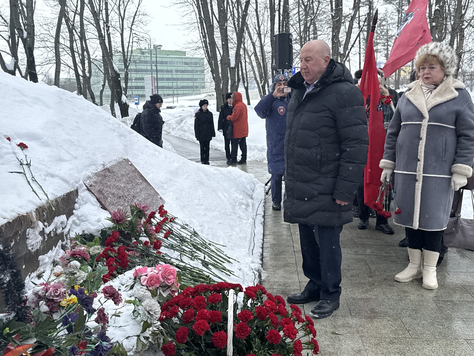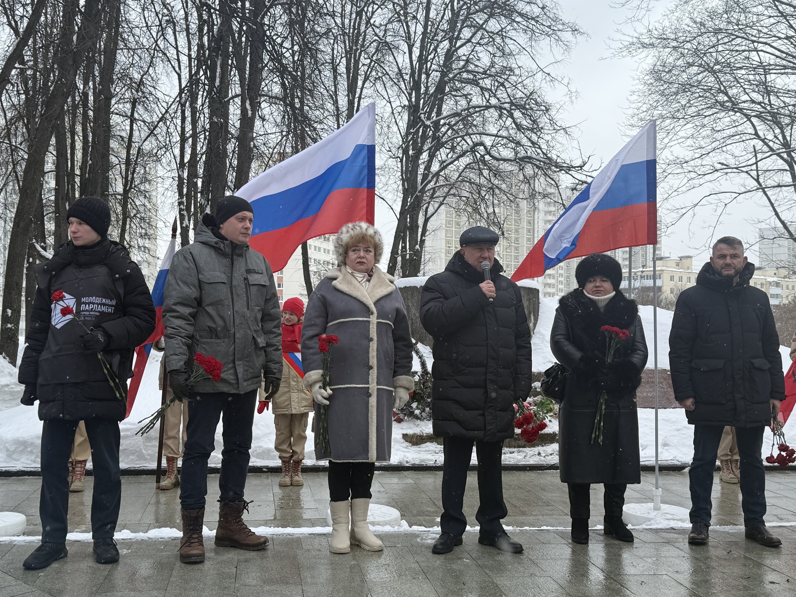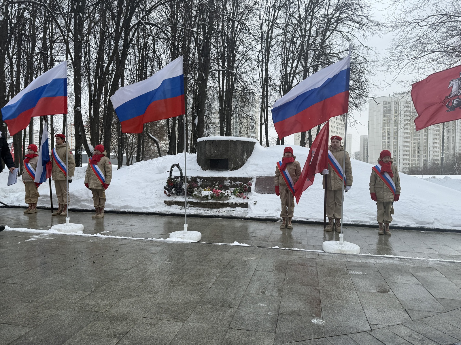 В честь Дня защитника Отечества глава муниципального округа Можайский Сергей Чамовских вместе главой управы Алексеем Мазановым, председателем Совета ветеранов Мариной Тришиной и муниципальными депутатами Егором Анисимовым и Натальей Выступец возложили цветы у мемориала ДОТ и почтили минутой молчания солдат, погибших в военных действиях, защищая нашу Родину.