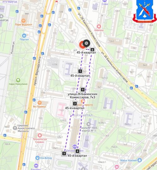 Глава муниципального округа Тропарево-Никулино Павел Щуров вместе с заместителем главы управы по работе с населением Ольгой Нигодиной, представителями ГБУ «Жилищник района Тропарево-Никулино», муниципальными депутатами и жителями района в рамках обхода прошёл по территории от первого корпуса дома № 7 на ул. 26 Бакинских Комиссаров и далее по схеме до дома № 9 на той же улице.