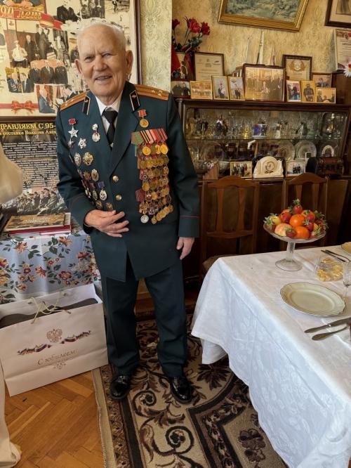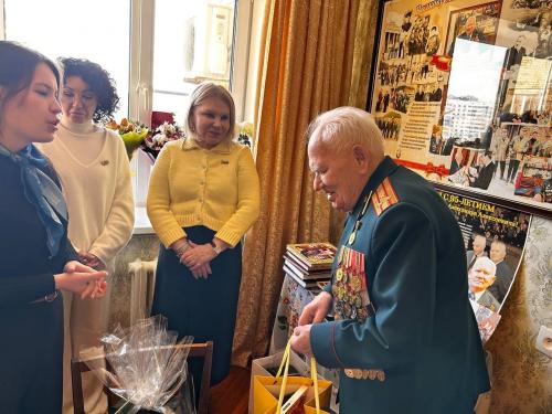 Гости поздравили именинника с вековым юбилеем и пожелали крепкого здоровья, долго оставаться в строю, оказывать помощь и поддержку в патриотическом воспитании молодёжи и всегда быть рядом.