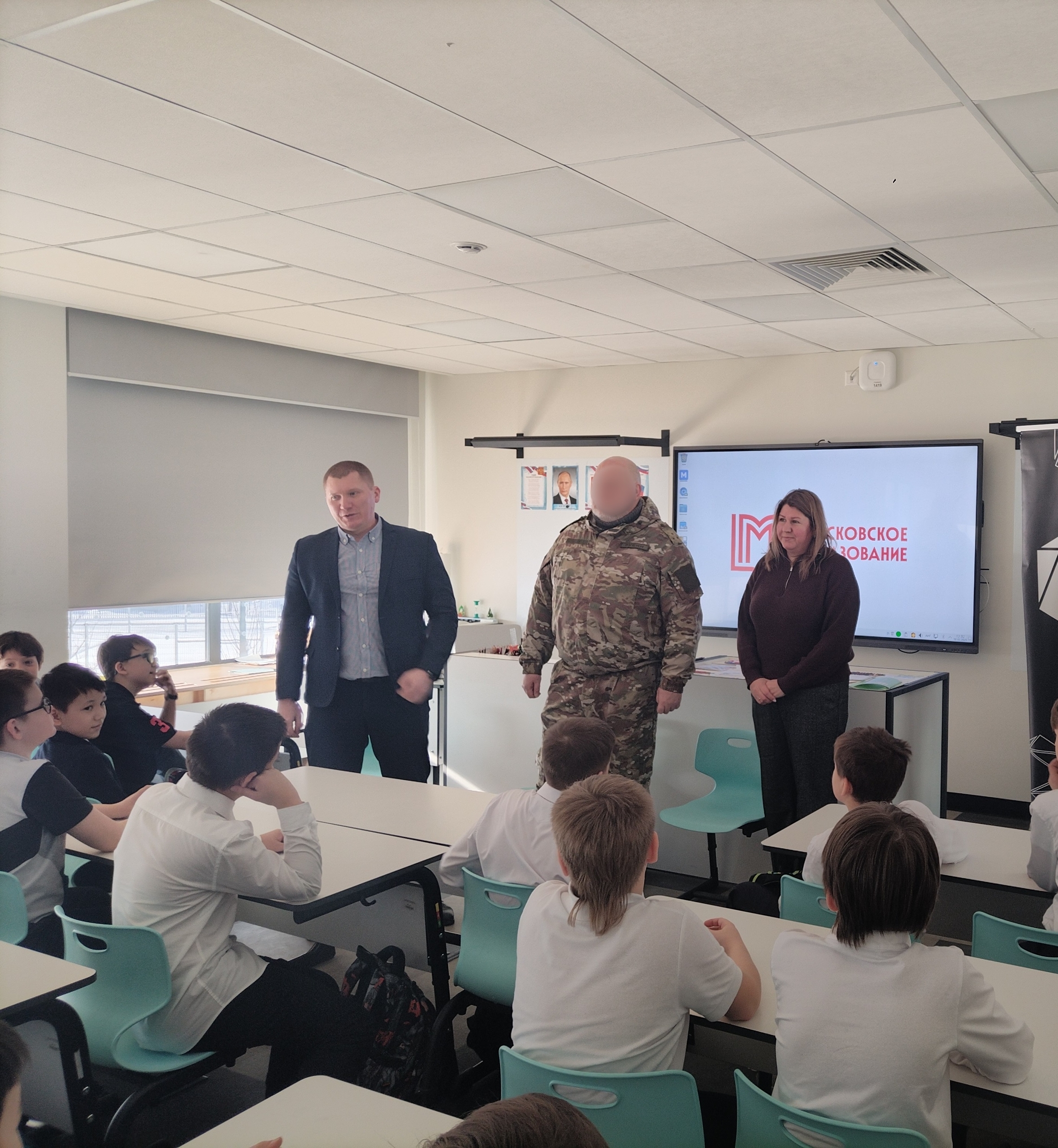 В преддверии Дня защитника Отечества в школе «Бибирево» состоялась встреча учащихся с участником специальной военной операции с позывным «Рубин». Во встрече приняли участие глава муниципального округа Бибирево Александр Аршанский, заместитель главы управы Ана Харламова и педагоги школы.