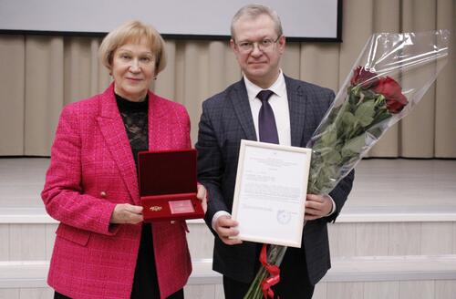 В школе № 1434 «Раменки» в торжественной обстановке глава муниципального округа Раменки Станислав Дмитриев вручил Ирине Анатольевне нагрудный знак и удостоверение к званию «Почётный житель внутригородского муниципального образования – муниципального округа Раменки в городе Москве» за значительный личный вклад в области просвещения, непосредственного духовно-нравственного и гражданско-патриотического воспитания детей и молодёжи.
