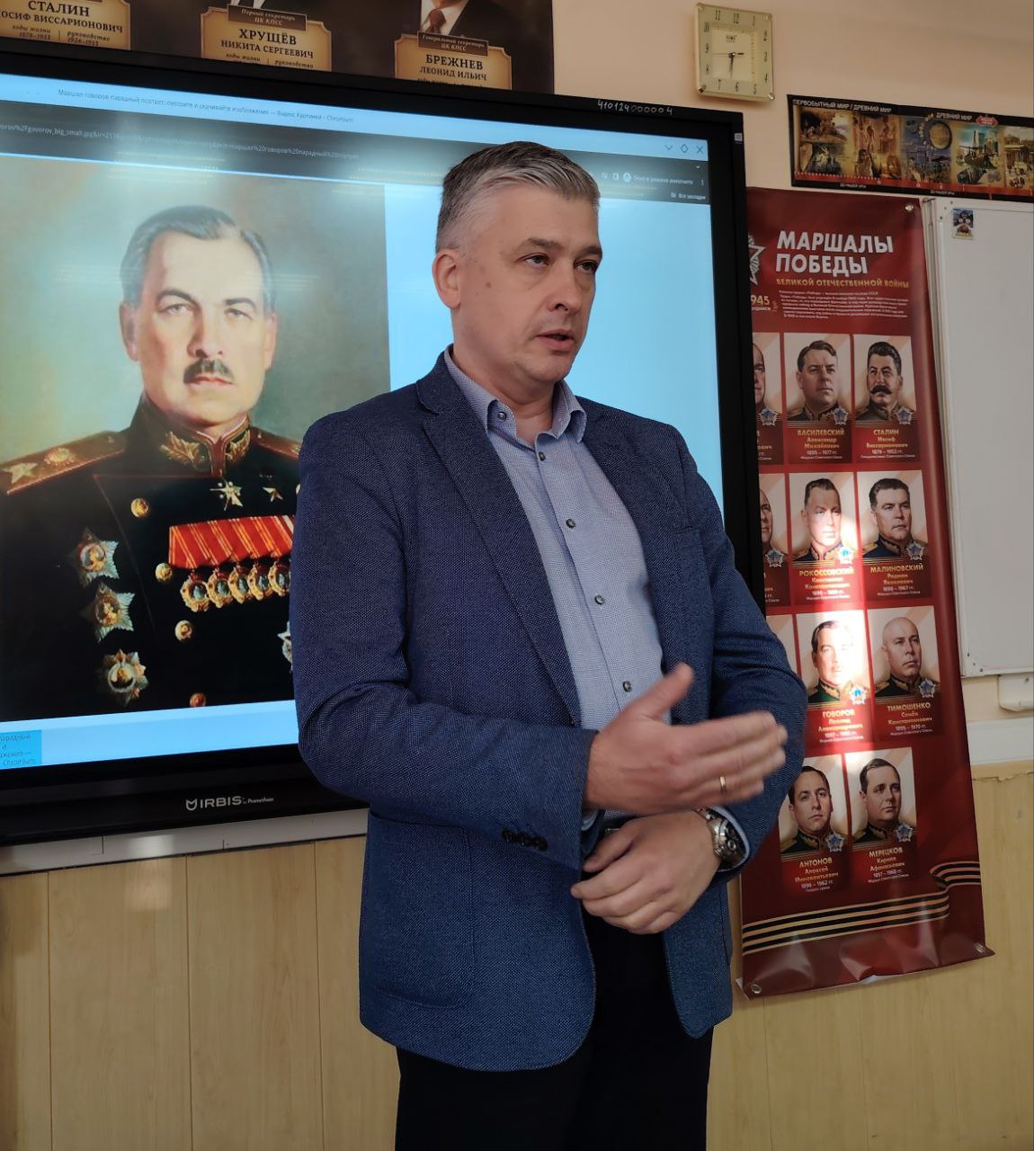 В подарок школе Алексей Сергеевич передал книгу Алексея Кирносова «Ни дня без Победы», рассказывающую о боевом пути маршала Говорова. Экземпляр пополнит школьную библиотеку и будет использован на уроках мужества и внеурочных занятиях по истории.