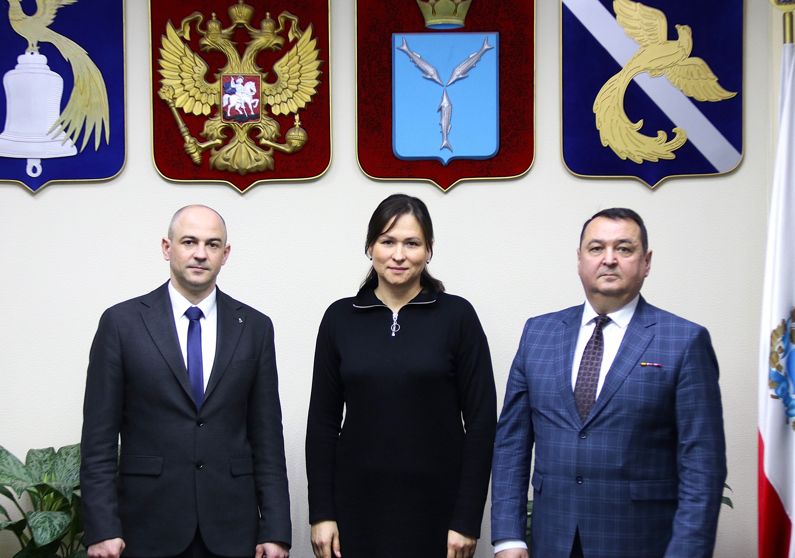 Глава муниципального округа Зюзино Виктория Шатова провела встречу с главой Татищевского муниципального района Саратовской области Александром Мордвинцевым и заместителем главы администрации по патриотической работе Рамисом Горяевым.