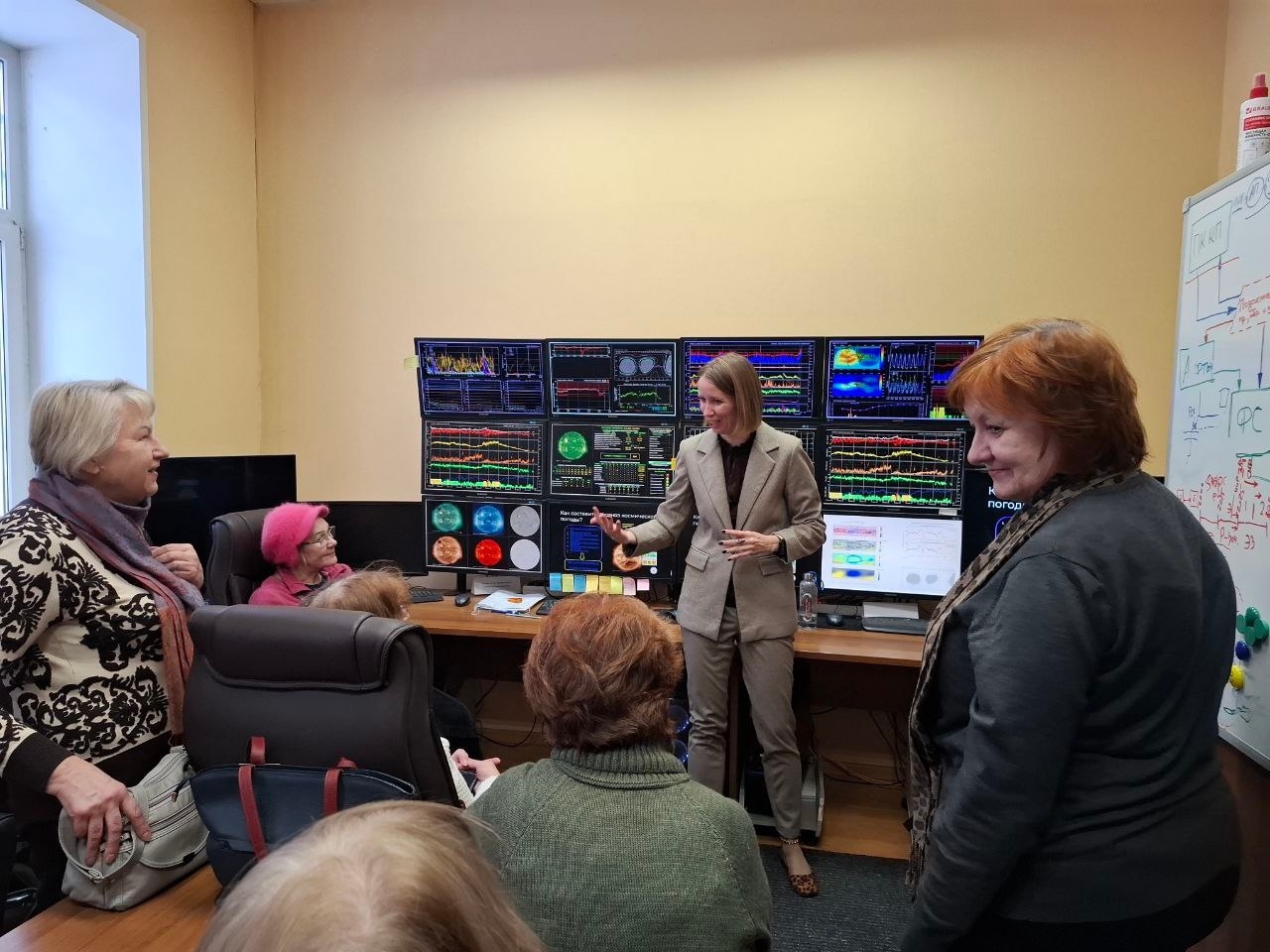 В отделе космических лучей старший научный сотрудник Наталья Шлык рассказала о влиянии Солнца на здоровье человека, методах прогнозирования и вкладе станции «Мир» в эти исследования. Экскурсия наглядно показала, как фундаментальные исследования ИЗМИРАН находят практическое применение в высоких технологиях.