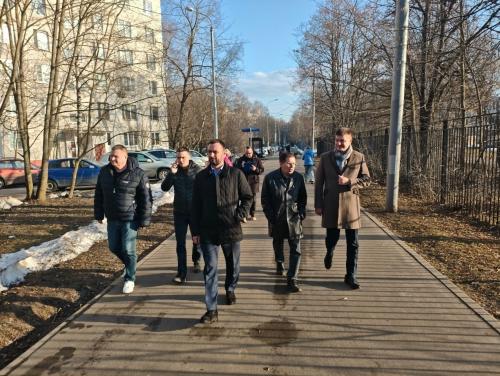 Депутат муниципального округа Матушкино Анатолий Кузнецов вместе с главой управы Антоном Гущиным и командой специалистов проверили состояние дворов и придомовых территорий в 4-м микрорайоне. В обходе также участвовали заместители главы управы и директор инженерной службы.