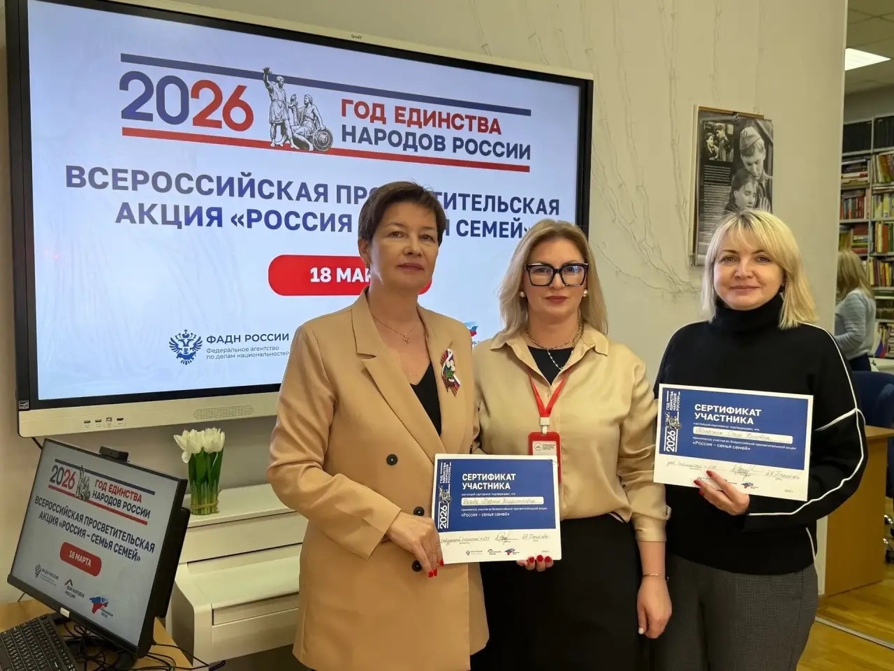 Глава муниципального округа Куркино Марина Дичева 18 марта присоединилась к проходящей в библиотеке № 239 всероссийской акции «Россия – семья семей», приуроченной к 12‑й годовщине присоединения Крыма к России.