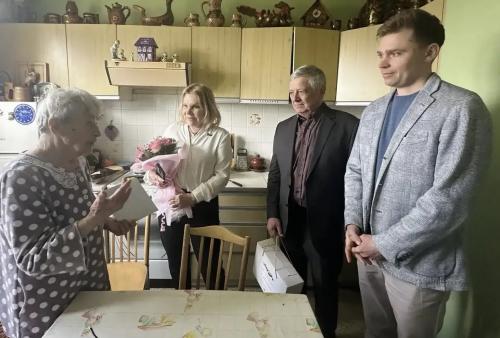 Глава муниципального округа Сокольники Людмила Коврикова вместе с председателем районного Совета ветеранов Сергеем Белобородовым и представителем управы Андреем Дятчиным поздравили с 95-летним юбилеем жительницу района Галину Александровну.