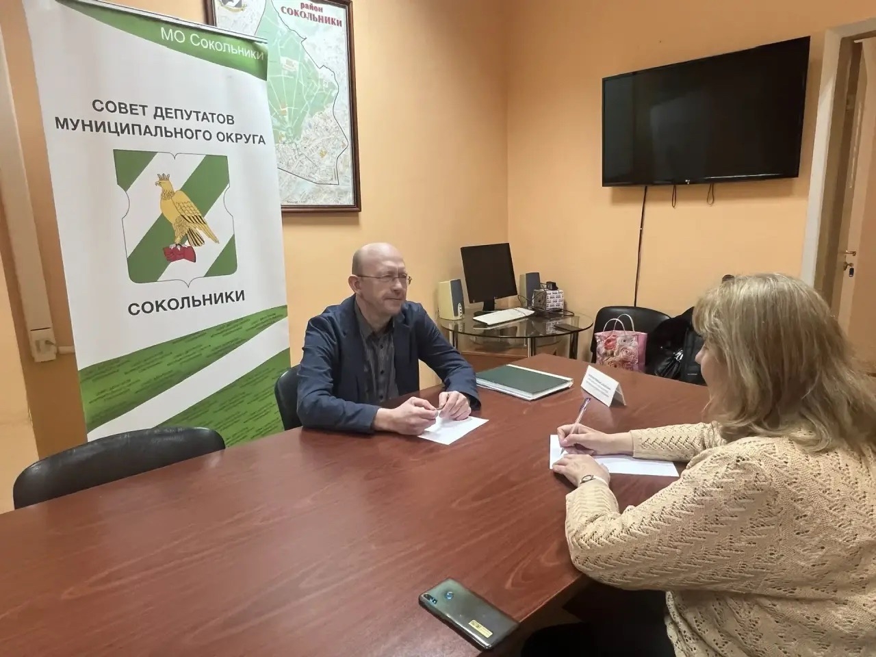 Юрист муниципального округа Сокольники Михаил Шашенко продолжает оказывать бесплатные правовые консультации жителям района. Так, к нему на приём пришла жительница по вопросам семейного права, порядка общения родителя с детьми.